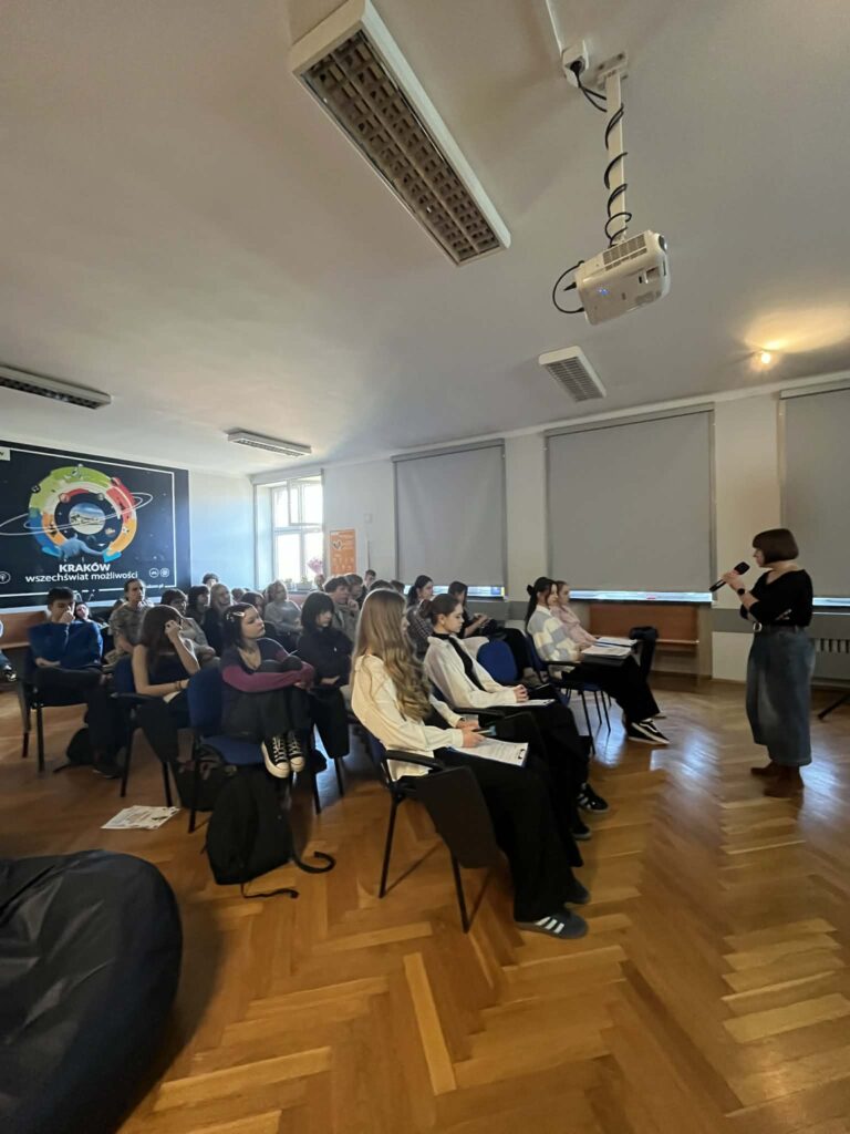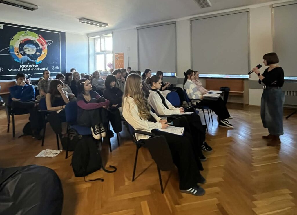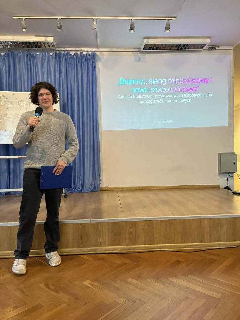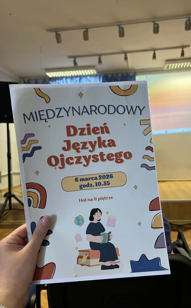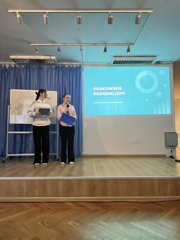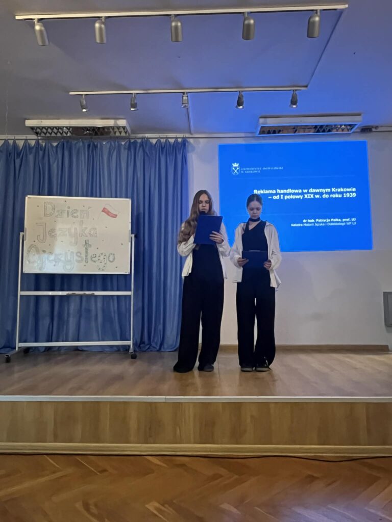 6 marca 2026 r. obchodziliśmy w szkole Dzień Języka Ojczystego. Odwiedziła nas pani dr hab. Patrycja Pałka, językoznawczyni z UJ, która opowiadała o reklamie w dawnym Krakowie. Uczennice klasy 1D – Joanna Wolak i Zuzanna Śpiewak przygotowały prezentację na temat regionalizmów, a Oliwier Kmiecik z 2F opowiadał o języku młodzieży. Na koniec P. Nicola Agier poruszyła temat zapożyczeń. Świętowanie zakończyliśmy Turniejem Kahoota – zwycięzcom konkursu serdecznie gratulujemy!