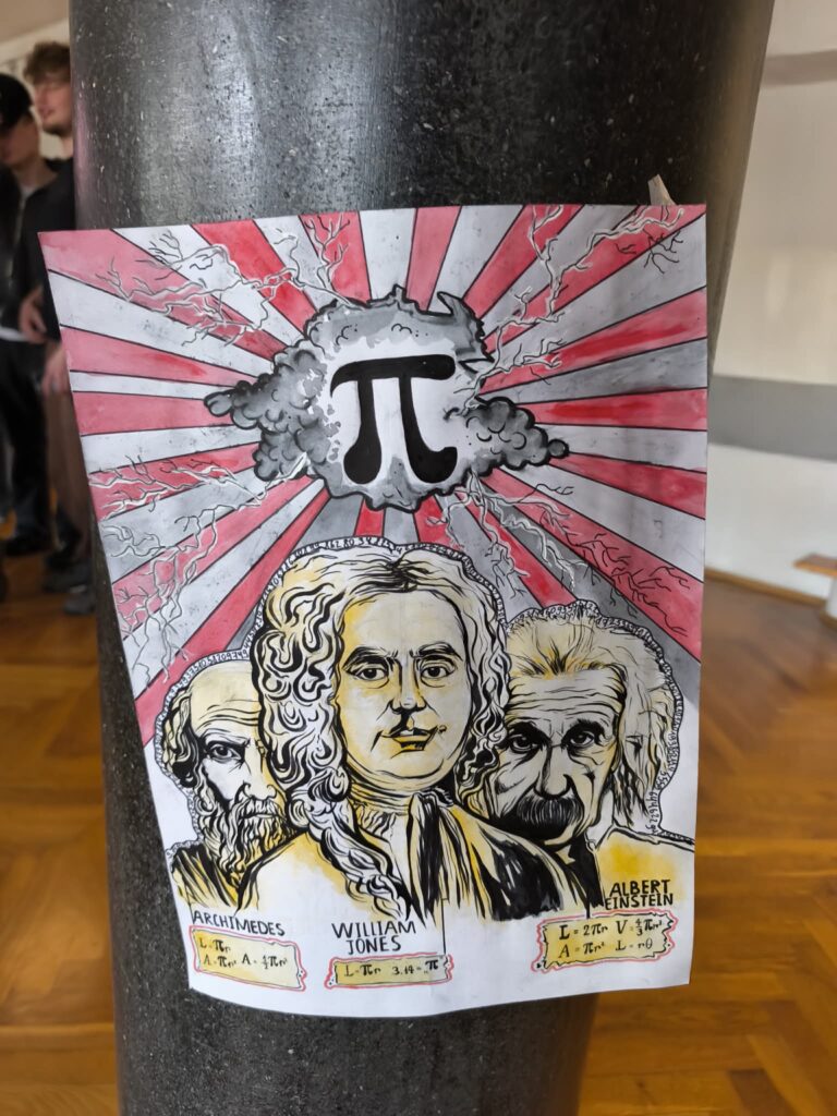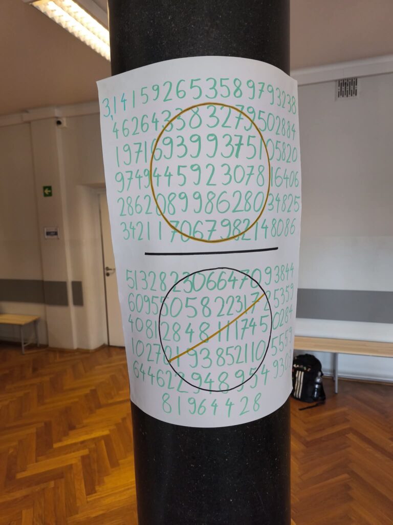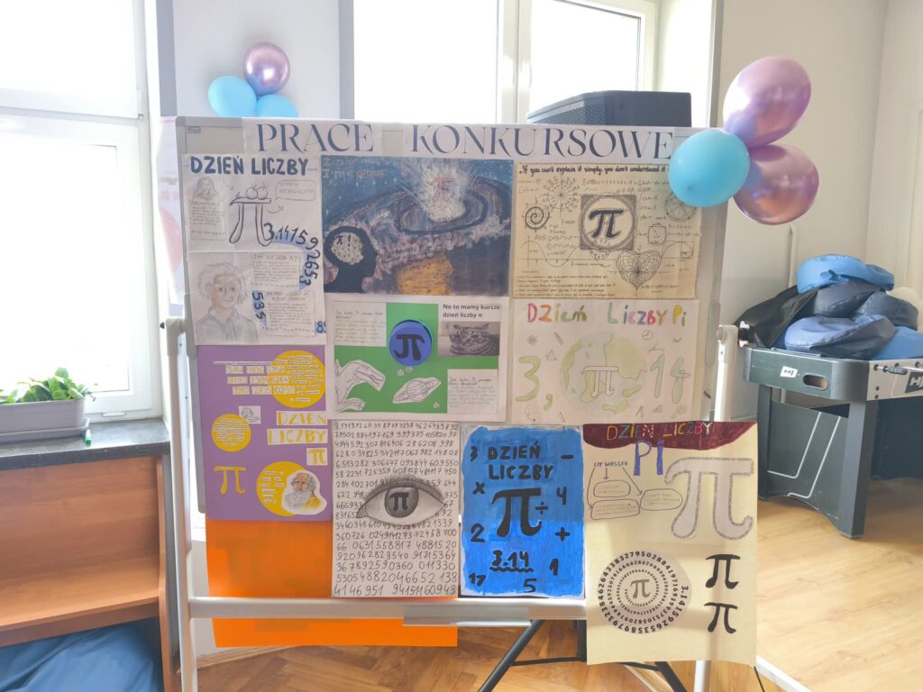 • Galeria π na Drugim Piętrze: Hol szkoły ozdobiły kreatywne plakaty. Artyści-matematycy w pomysłowy sposób przedstawili historię i ciekawostki związane z tą najsłynniejszą stałą matematyczną.