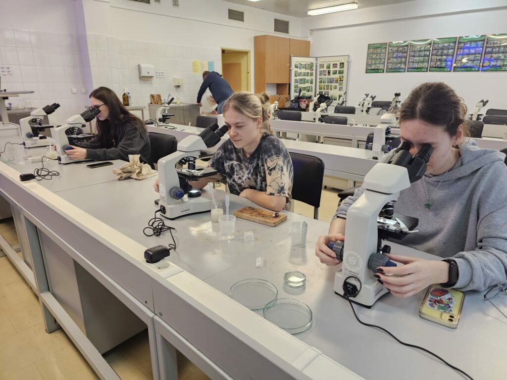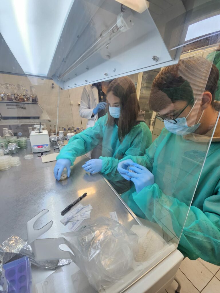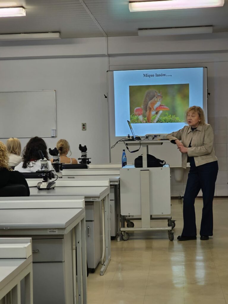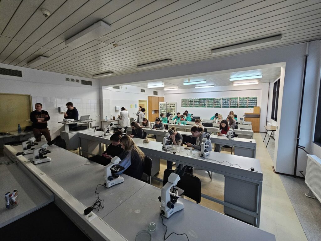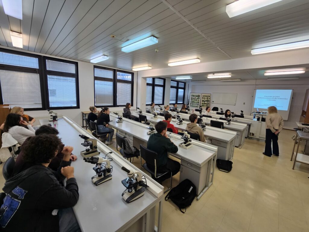 25.02.2026 miało miejsce wyjście klasy medycznej 3G na Wydział Farmacji UJ. Podczas wizyty uczniowie mieli okazję wysłuchać fascynującego wykładu o grzybach, ich właściwościach i zastosowaniu w diecie oraz medycynie. Część warsztatowa poświęcona była przeszczepianiu grzybni. Uczniowie stworzyli własną domową hodowlę boczniaka różowego. Oglądali także grzyby pod mikroskopem. W dalszej części zajęć uczniowie poznali zagadnienia związane z hodowlą roślin w laboratorium – dowiedzieli się, dlaczego się ją prowadzi oraz jakie przynosi korzyści. Na zakończenie odbył się quiz sprawdzający wiedzę zdobytą podczas spotkania. Trzech uczniów zwyciężyło w konkursie i otrzymało autorskie magazyny naukowe.