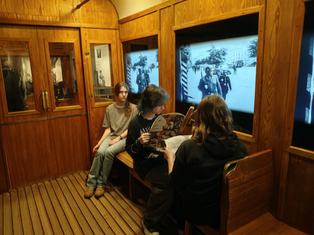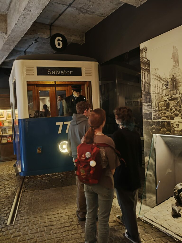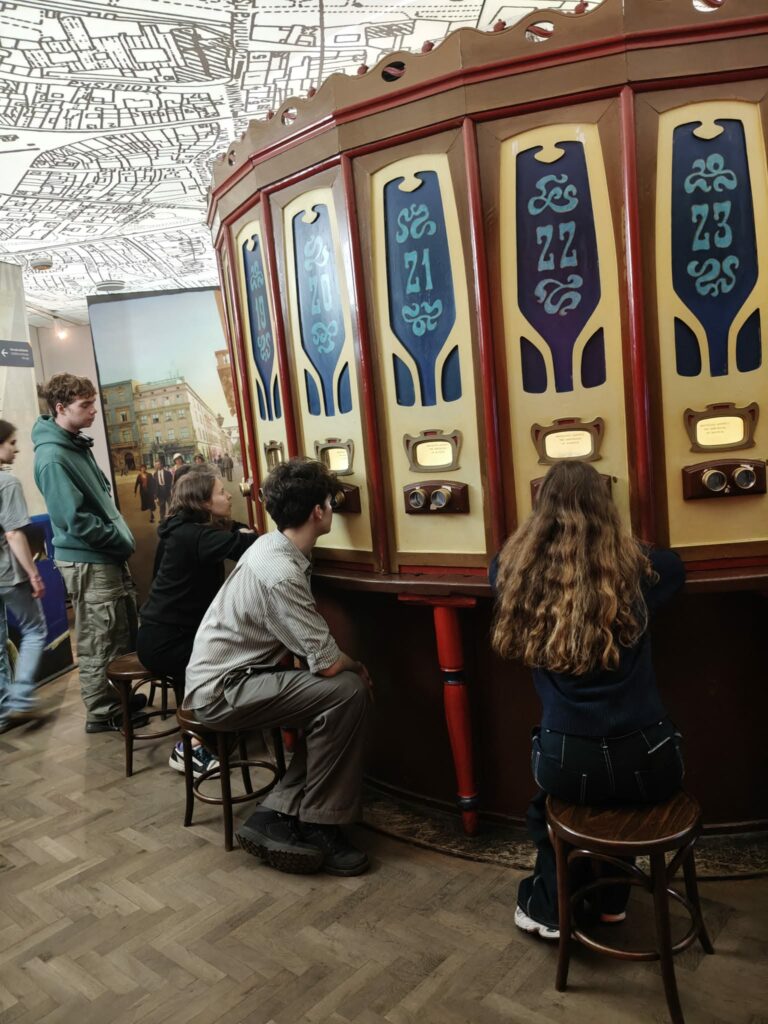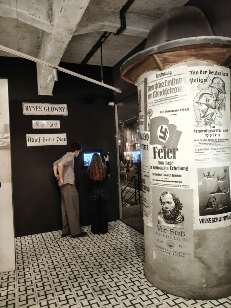 Dnia 17 marca 2026 r. szkolne Koło Miłośników Krakowa obejrzało wystawę „Kraków – czas okupacji 1939–1945”, która mieści się w dawnym budynku Fabryki Emalia Oskara Schindlera. Podczas zwiedzania poznaliśmy historię polskich i żydowskich mieszkańców naszego miasta w czasie okupacji. Historia II wojny światowej krzyżuje się tu z życiem codziennym, życie prywatne – z tragedią Holocaustu. Dzięki muzealnej scenografii mogliśmy wejść m.in. do fotoplastykonu, do tramwaju, przez okna którego oglądaliśmy film z życia miasta oraz przejść przez ciasny labirynt getta, by znaleźć się w gabinecie Oskara Schindlera. Narracja muzeum złożona jest z dokumentalnych zdjęć, relacji świadków historii, filmów i prezentacji multimedialnych, które tworzą wizję dziejów Krakowa czasu okupacji.
