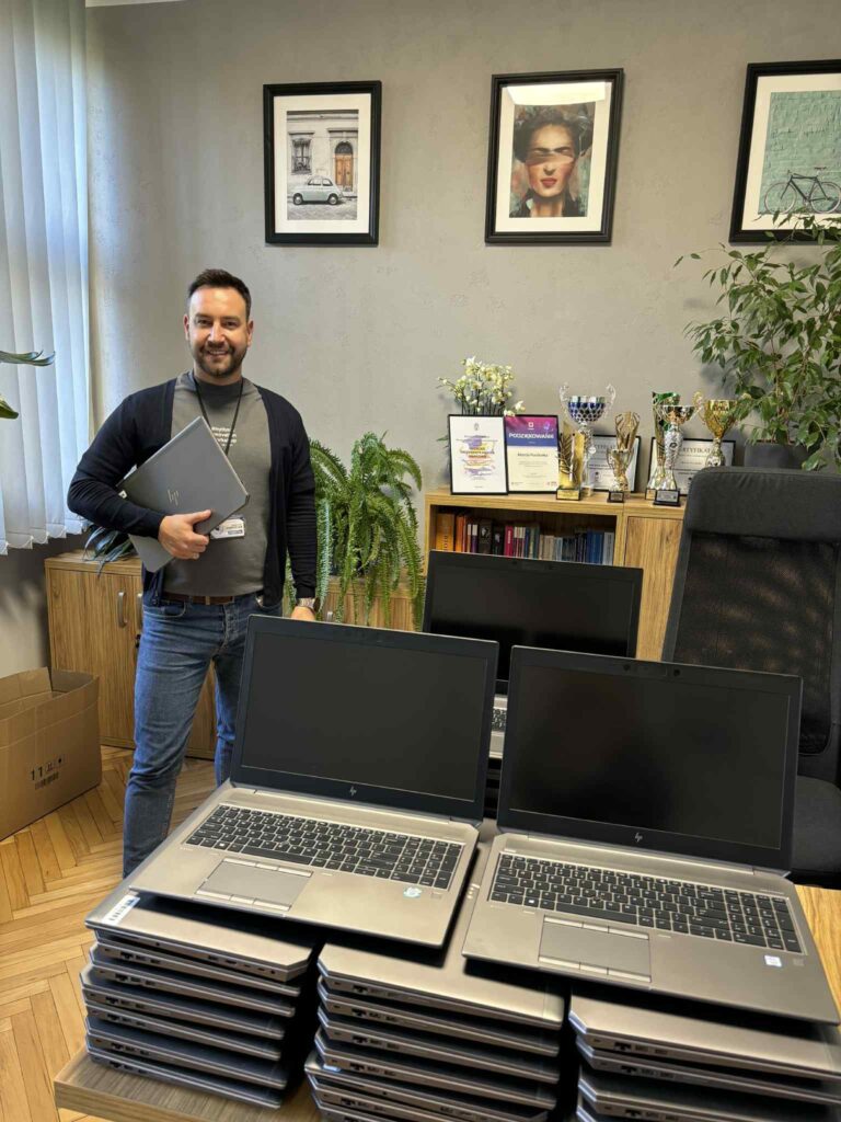 Kolejna świetna wiadomość! Dzięki zaangażowaniu Dyrektora 27 LO dr Marcina Purchałki możliwe było kolejne wsparcie naszej szkoły i krok do jeszcze lepszej nowoczesnej edukacji! 22 października 2025 r. nasze liceum otrzymało od firmy Motorola Solutions 35 szt. laptopów, które teraz będą służyć nam przez długi czas! Dzięki takiemu wsparciu możliwa będzie wymiana szkolnych laptopów nauczycielskich w salach lekcyjnych na nowsze i bardziej wydajne.