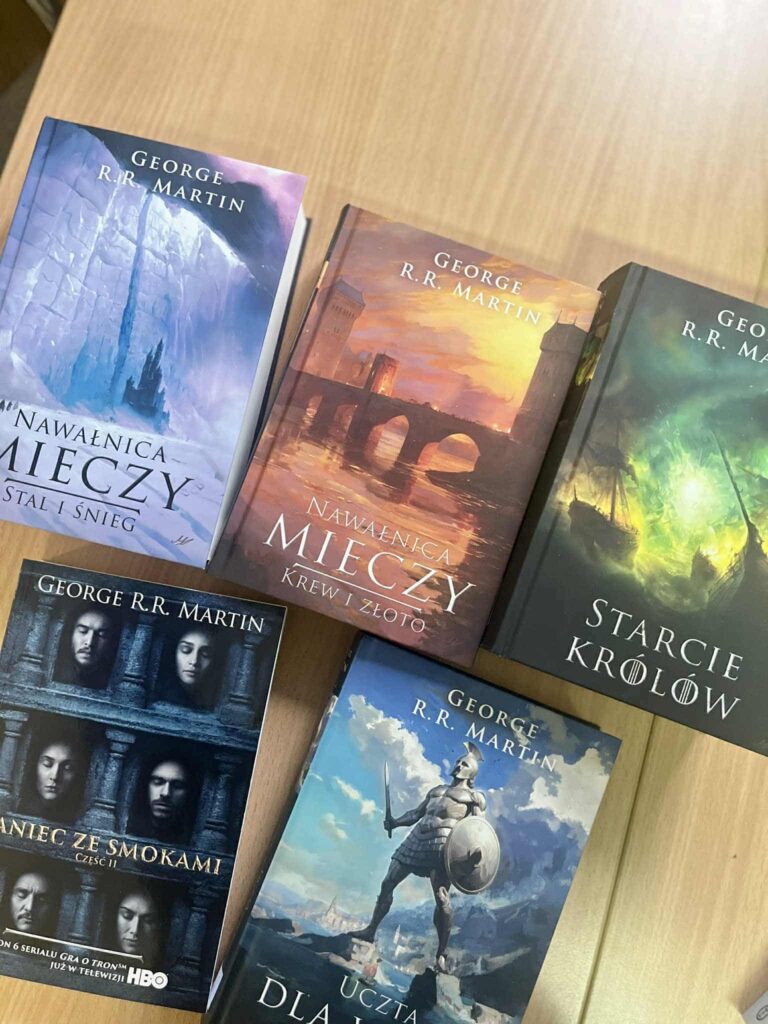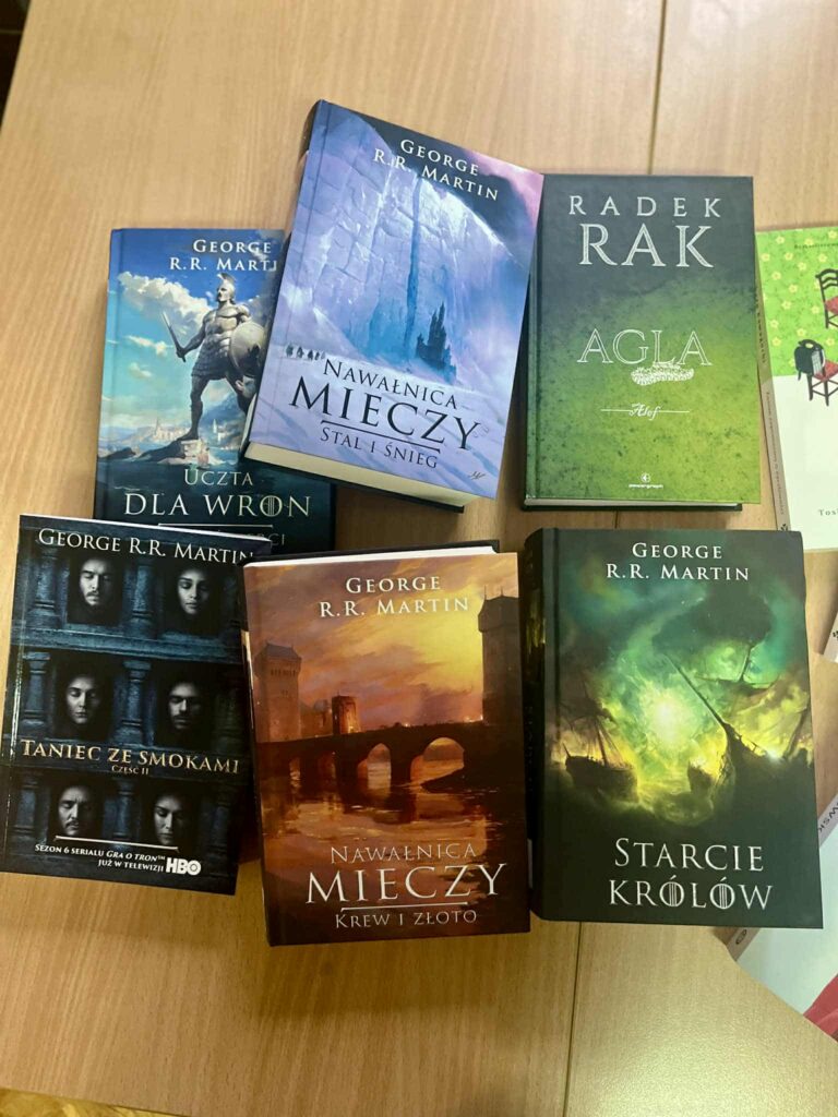 W naszej bibliotece szkolnej pojawiło się ostatnio (jesienią 2025 roku) wiele nowości! Coś dla siebie znajdą zarówno miłośnicy fantastyki, jak i powieści obyczajowych. Szczególnie polecamy kolejne tomy cyklu Pieśń lodu i ognia, poruszający cykl książek Zanim wystygnie kawa, przygodową historię Radka Raka Agla oraz książki Eleny Ferrante Genialna przyjaciółka oraz Historia nowego nazwiska.