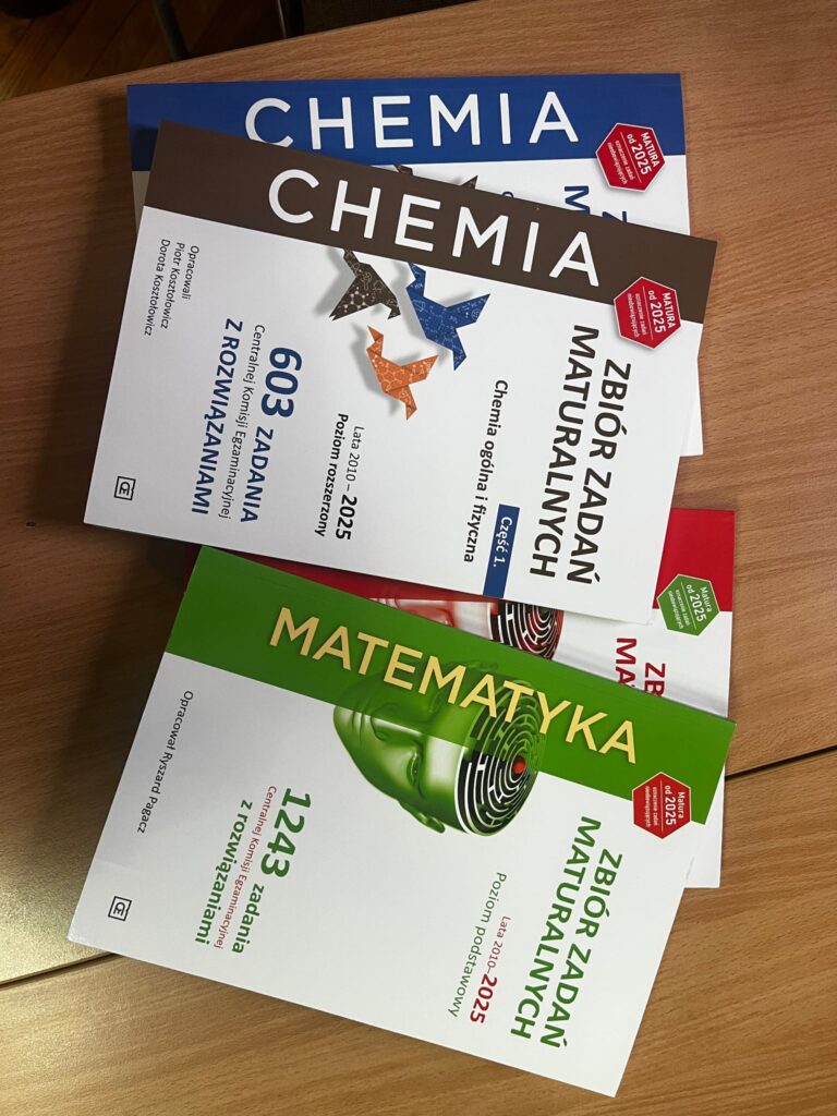 Dodatkowo w bibliotece pojawiły się nowe pomoce dydaktyczne, które mogą okazać się bardzo przydatne w codziennej nauce i przygotowaniach do egzaminów. Wśród nich znajdują się m.in. karty konwersacyjne (Matura Basic, Mini Job Interview i inne), zbiory zadań maturalnych z chemii i matematyki, a także karty pracy z języka polskiego.