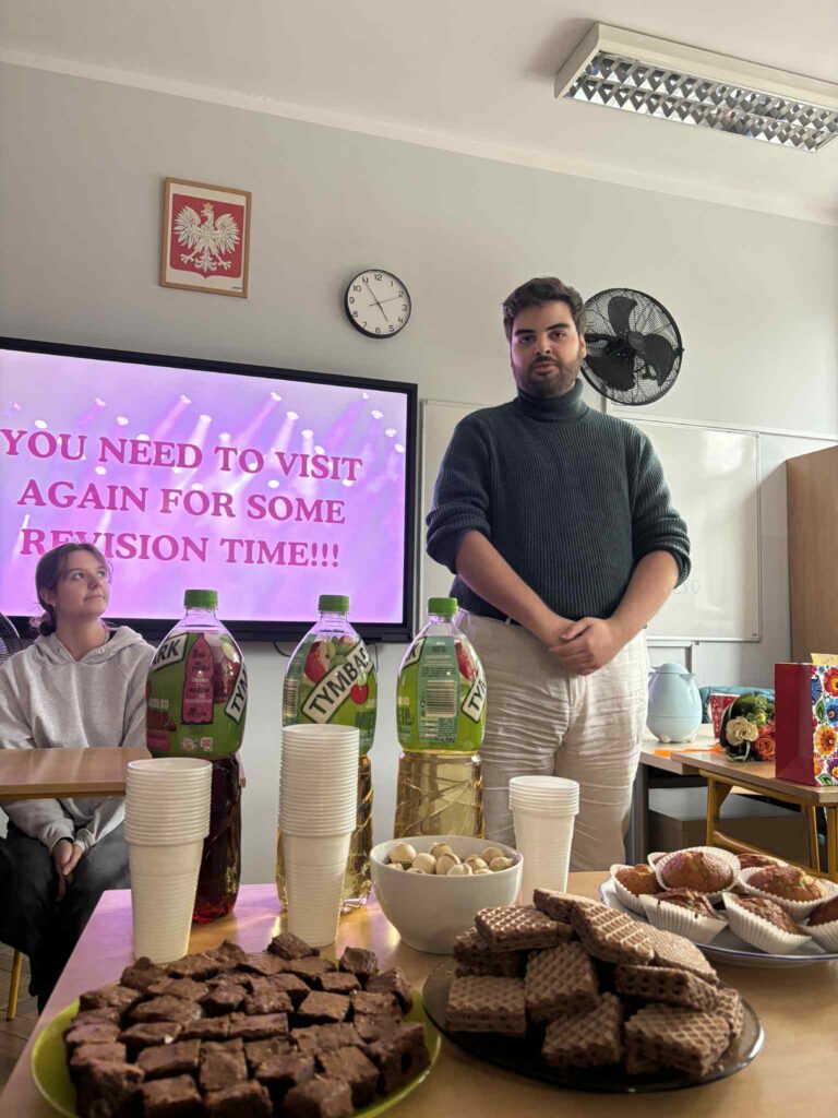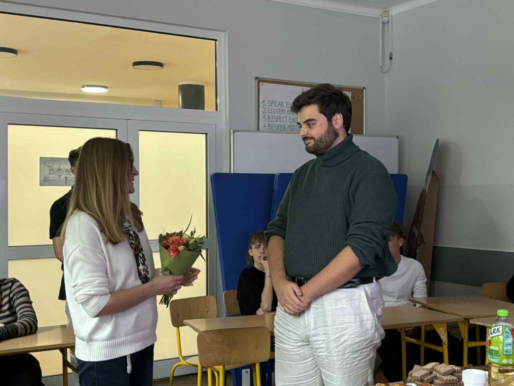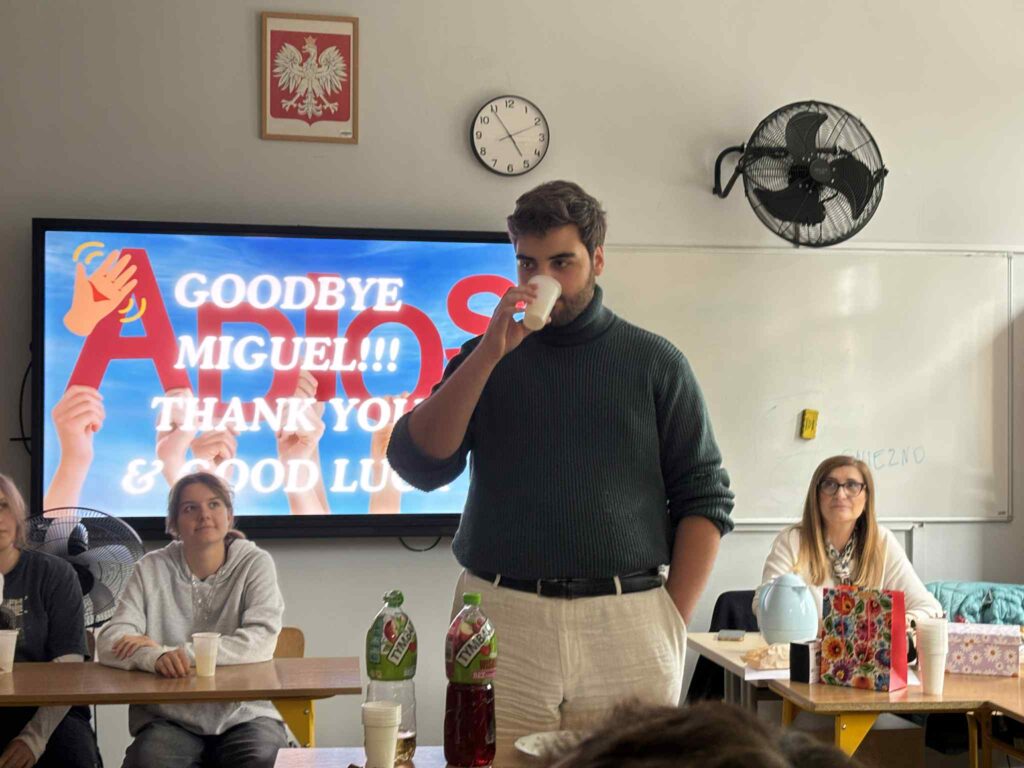 Skoro wrzesień, to znowu nadchodzi słodko-gorzki czas pożegnań… w piątek (26.09.2025) wraz z Dyrekcją, uczniami i nauczycielami żegnaliśmy naszego tegorocznego wolontariusza Miguela, który kończy już nasz wspólny projekt i wraca na studia do Hiszpanii.